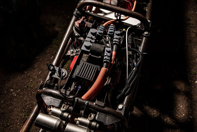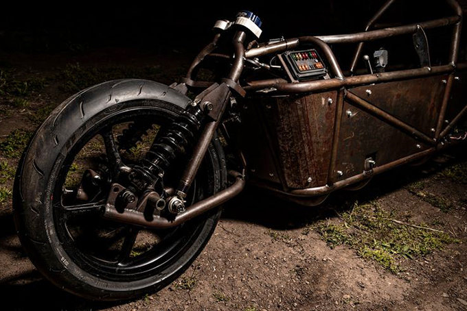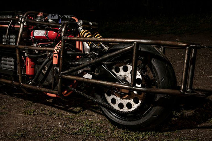 Within the skeletonized frame is a 22 kWh LiFeP04 battery paired to a 200 kW motor. So far, tests show that it can produce up to 268 horsepower, which should be enough to move the 1,700-pound electric motorcycle. We’re sure that the open-work design is not final, because it will need to be as aerodynamic as possible if it hopes to achieve the goal.