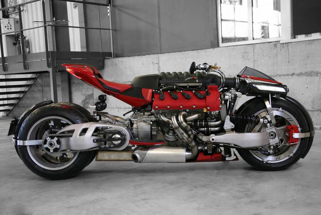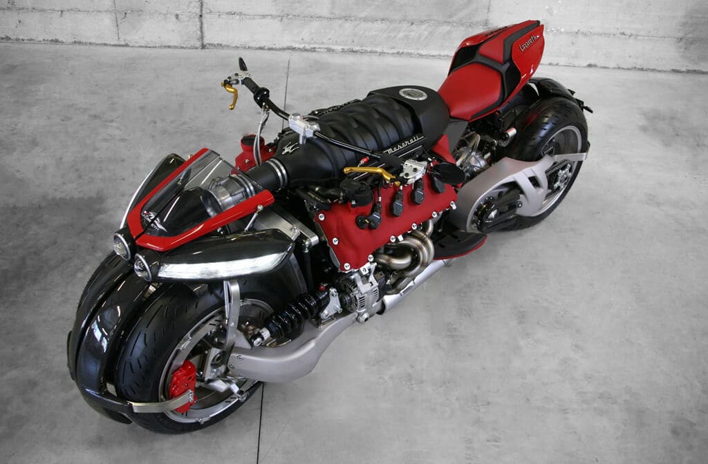 In order to make sure that the bike would be perfectly able to face the massive power that the engine can churn out, which is 470 bhp, Lazareth made a few key changes both in design and in functionality. The most obvious change of all is the addition of two extra wheels – one at the front and one at the rear.