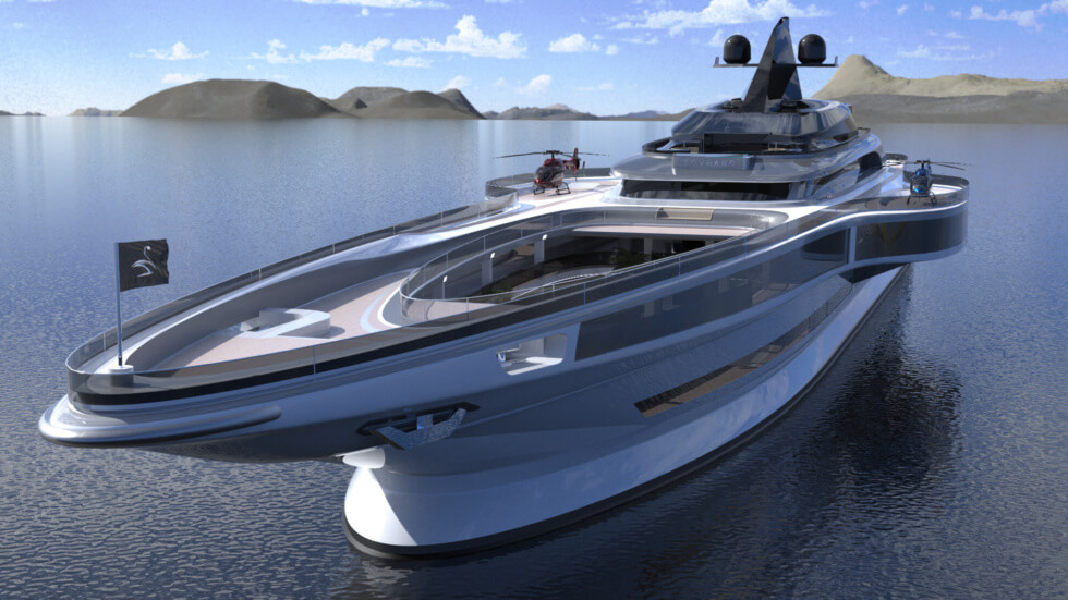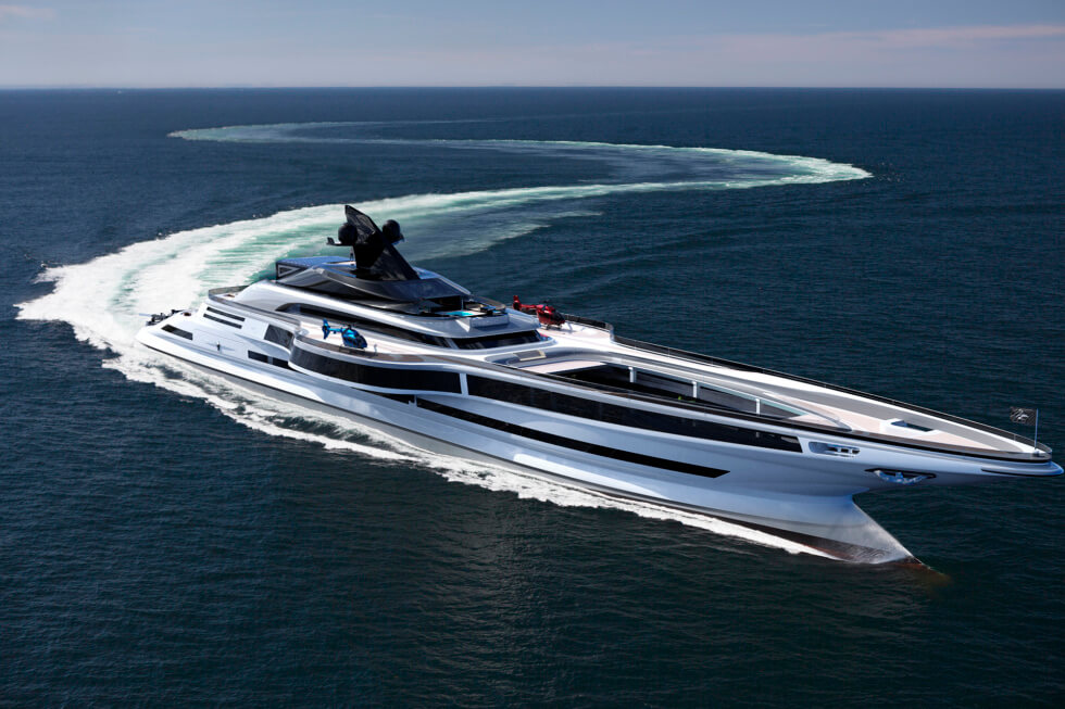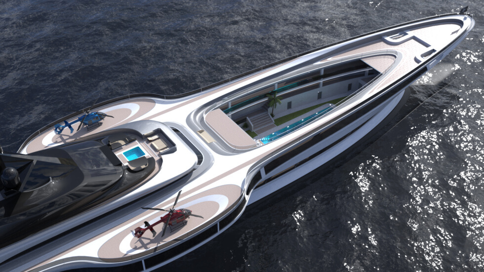This 555-foot gigayacht concept is dubbed the “sovereign of the sea” by the Lazzarini Design. Its majestic stature tells us this distinction fits it perfectly. It appears the firm’s designers are bustling with energy and pumping out stunning projects at an outstanding pace.
