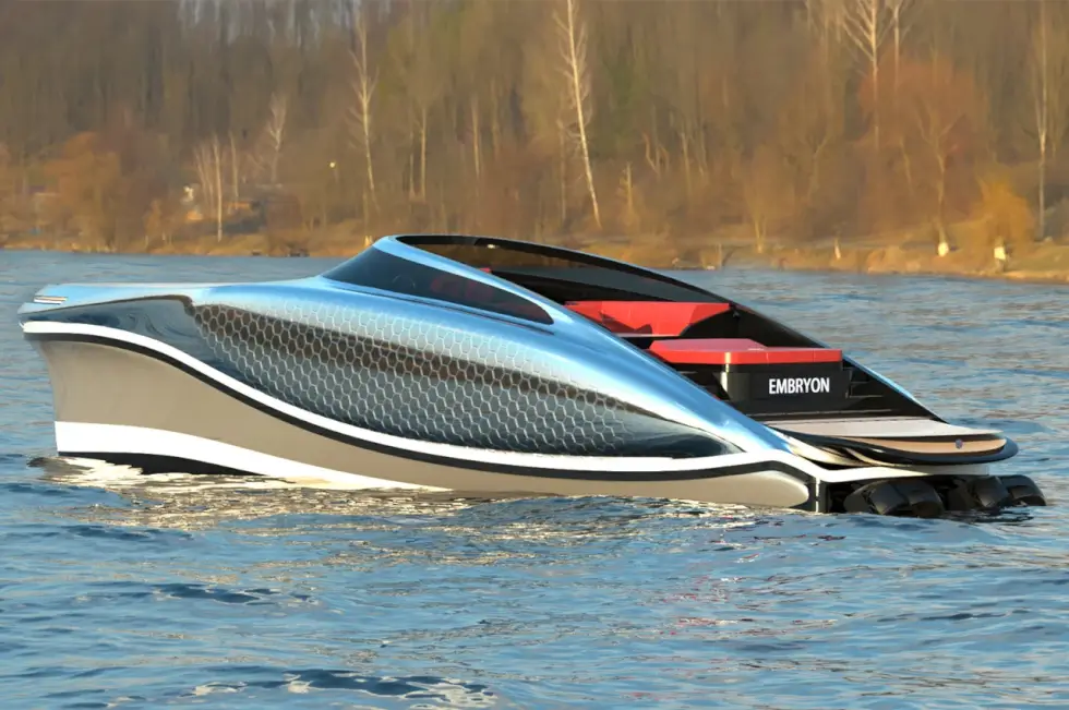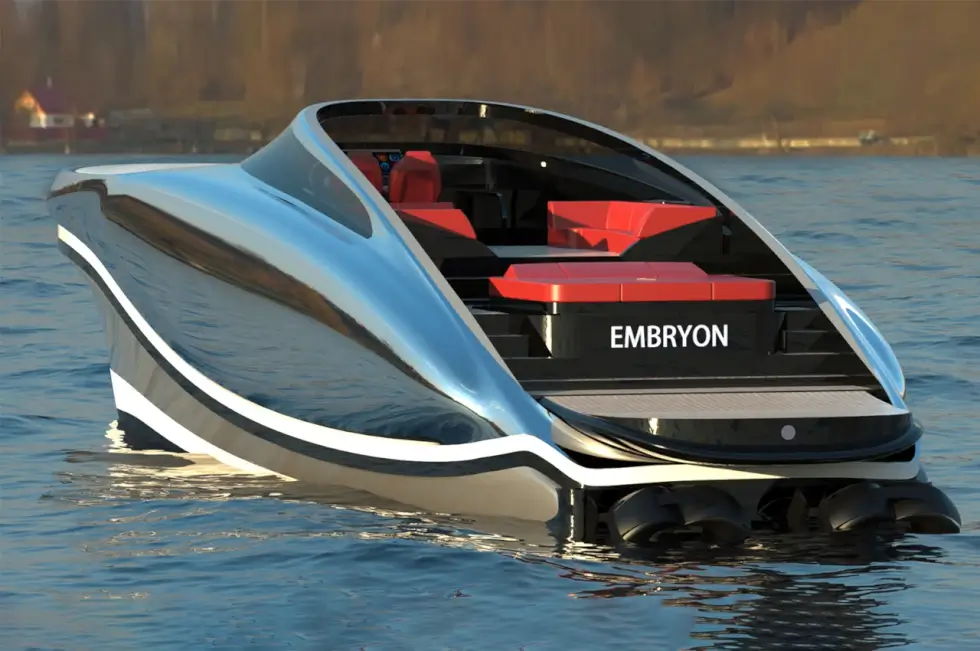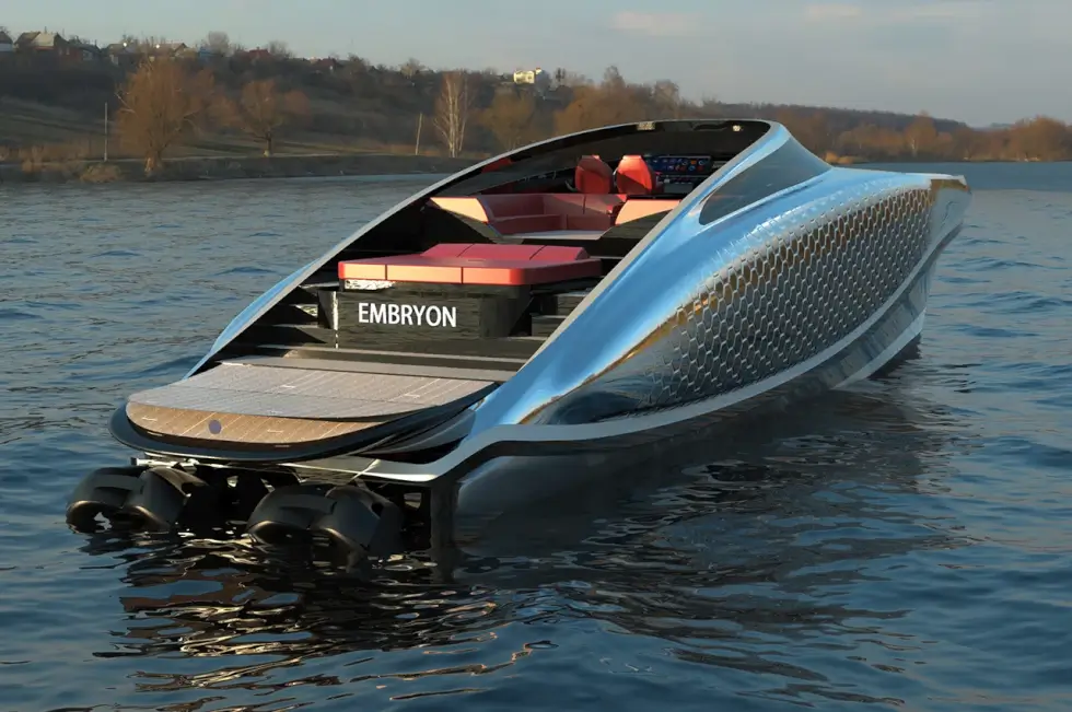 This 78-foot watercraft is what the Italian designer calls a hyper boat. Much like its land-based counterpart – a hypercar – it is engineered for raw performance and speed. Just look at the flowing curvature of its silhouette. As drag becomes a mere afterthought, this allows the Embryon to cruise the seas at breakneck speeds.
