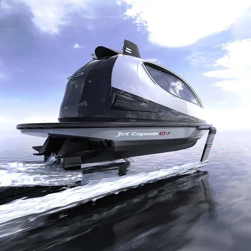 The name supposedly stands for Gran Turismo-Foil. Meanwhile. its futuristic form factor appears like a hydrodynamic pod with a cutting-edge foiling setup. According to Jet Capsule, the GT-F will purportedly use an advanced propulsion system, which allows it to cruise at 35 knots and hit a top speed of about 60 knots.