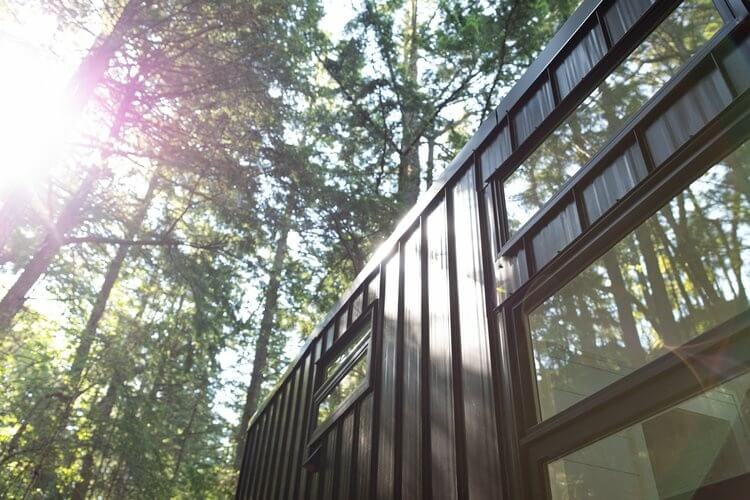 Clients can choose between two Arrowsmith variants: 8’6″ x 34′ – 40′ or 10′ x 32′ – 40′ with both mounted on a triple-axle trailer. While a house on wheels is technically a motorhome, the rims on this bad boy are purely for transport purposes. This approach is logical as everything can be fabricated at Left Coast Tiny Homes’ facilities.