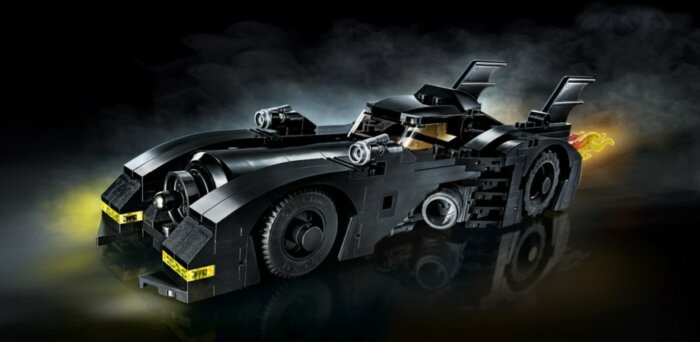 In addition to the sleek shape and classic Bat-wing flair, the Batmobile comes with a slide-open cockpit, wraparound windshield, decorative grappling hooks, and twin pop-up machine guns. The cockpit is highly detailed, providing two mini-figure seats and a dashboard as high-tech as the real Batman would use.