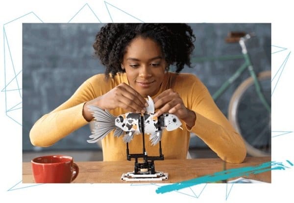 Unlike the LEGO Creator sets that draw inspiration from inanimate objects like vehicles, buildings, and other structures, the FORMA uses the beautiful Koi fish as its main model.  It has 294 different sturdy elements to work with and offers four different customizable skin colors so you can transform the Koi into a colorful marine animal.