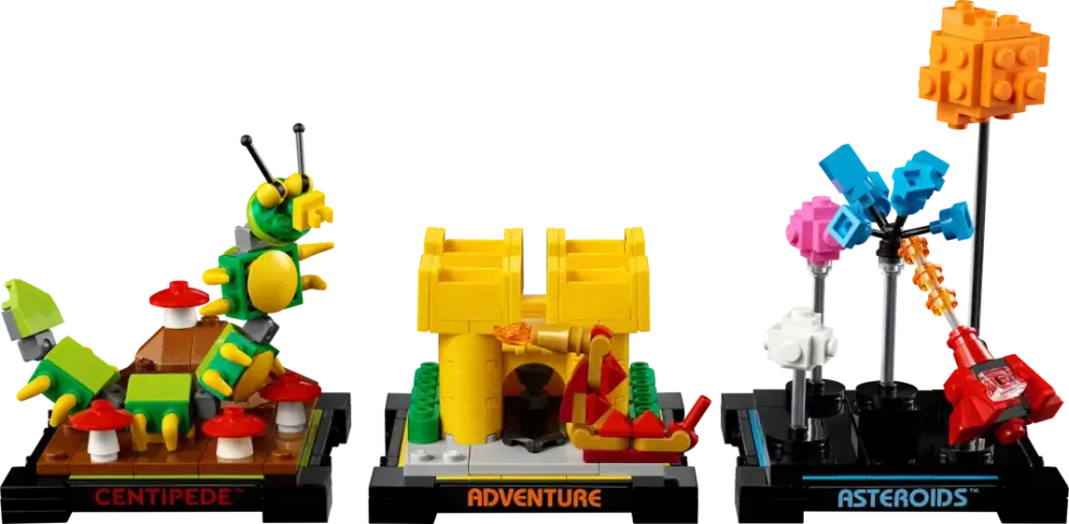 Not only can you assemble the main console, but the joystick, and game cartridges as well. The latter includes Adventure, Centipede, and Asteroids. Plus, there’s even a buildable 1980s-style holder. If that’s not enough, the LEGO ICONS Atari 2600 also has three scenes that showcase what these games are all about.