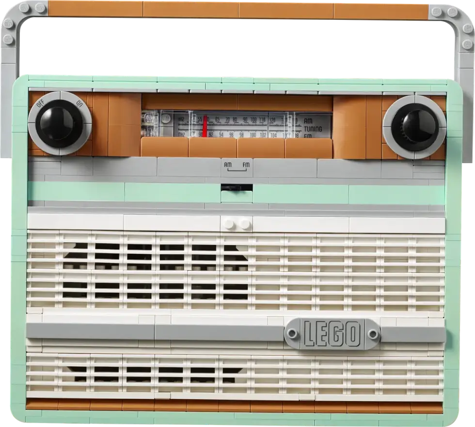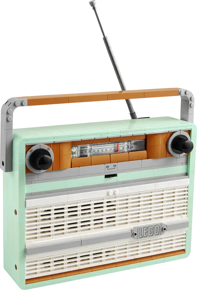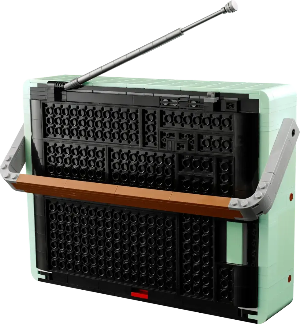 “Craft an ornamental replica of a 1970s vintage radio with a foldup handle and antenna, classic power and tuning dials and a sliding frequency switch. Rotate the dials to emit tuning signals and music snippets. Mount a smartphone in the rear compartment to relish your favorite tunes while bringing a cool retro vibe to your home or office,” writes LEGO.