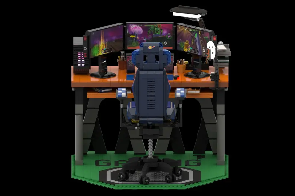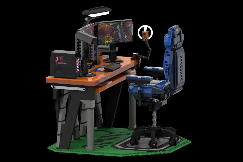 You can make it swivel, adjust the height, and even tilt the backrest. According to its creator, “the most difficult part was creating the gamer chair, since it represents the entire set and is a real challenge since it includes the rotation system, backrest tilt, and raising and lowering the seat.”