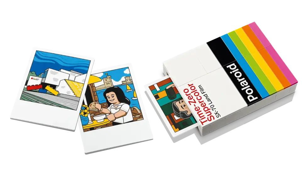 Furthermore, you can also assemble a Polaroid Time-Zero Supercolor SX-70 Land Film pack. This accessory holds three illustrated photos. One of the pictures is that of Edwin H. Land — the inventor of Polaroid. You can load this into the complete LEGO IDEAS Polaroid OneStep SX-70 Camera and manually eject it with a button.