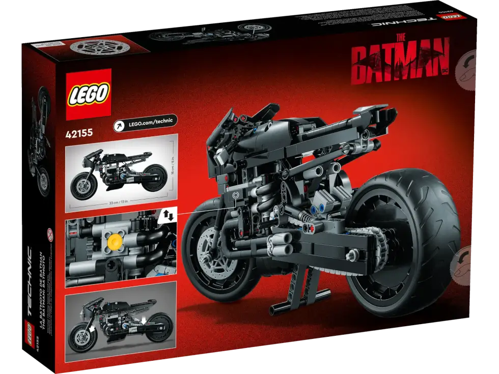 Just like the kits before, expect remarkable articulation that closely matches that of an actual two-wheeler. According to LEGO the “steering, suspension, and chain drive” move just like the real thing, albeit in plastic. Once complete, the BATCYCLE measures 6.6” x 13” x 4.5” (H x L x W).