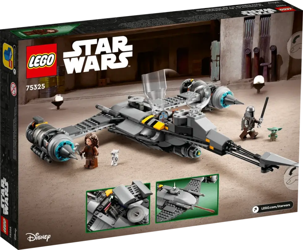 Of course, aside from the ship, the box ships with four key characters in the series. LEGO Minifigures of The Mandalorian, Peli Motto, Grogu, and a BB Droid are part of the package. When the last brick is in place, the N-1 Starfighter stands 2.5 inches high, 16.5 inches long, and 11.5 inches wide.