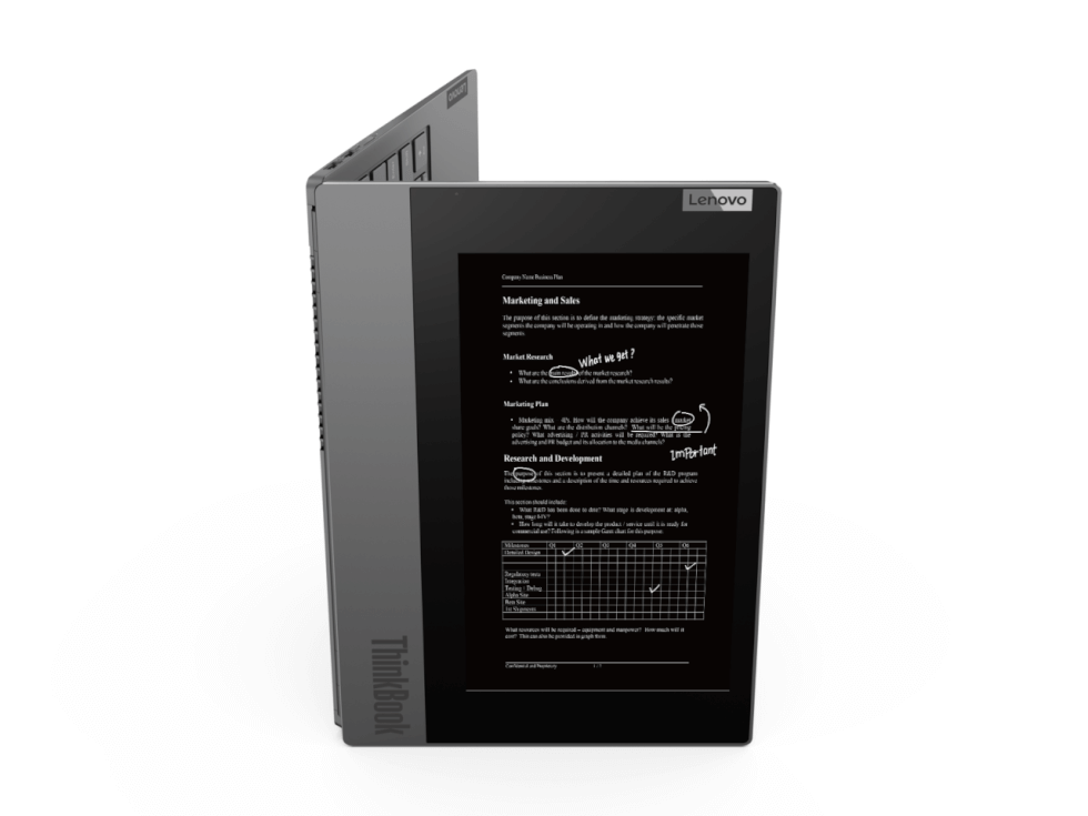 According to the manufacturer, users can use the E-paper touchscreen to take notes, read documents, draw, and get notification alerts. Moreover, the ThinkBook Plus ships with a Lenovo Precision Pen as a bonus. Owners can apparently fire up the secondary display even when the primary system is shut down. Likewise, it is possible to use both at the same time.