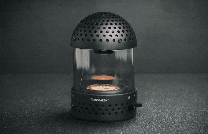 The Transparent Light Speaker is a portable lantern and music player in one. It provides rich bass with stable mid-tones and crisp high notes and light that flickers to mimic natural flame.