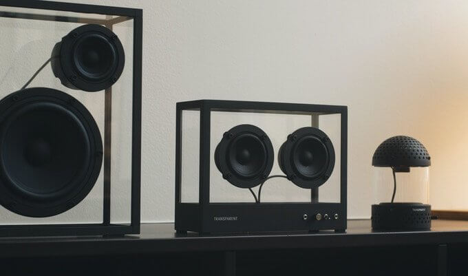 This innovative device uses a solid borosilicate glass cylinder that seals the 3-inch woofer in the bottom. The top dome-shaped enclosure holds a powerful 2.5-inch full-range driver that boasts 360-degree sound. It uses the latest Bluetooth 5.0 tech that includes “True Wireless” dual speakers for wireless streaming. This makes it possible to connect two speakers together so you can designate each as left and right. The speakers also work as a satellite to pair with previous stationary Transparent speaker models.