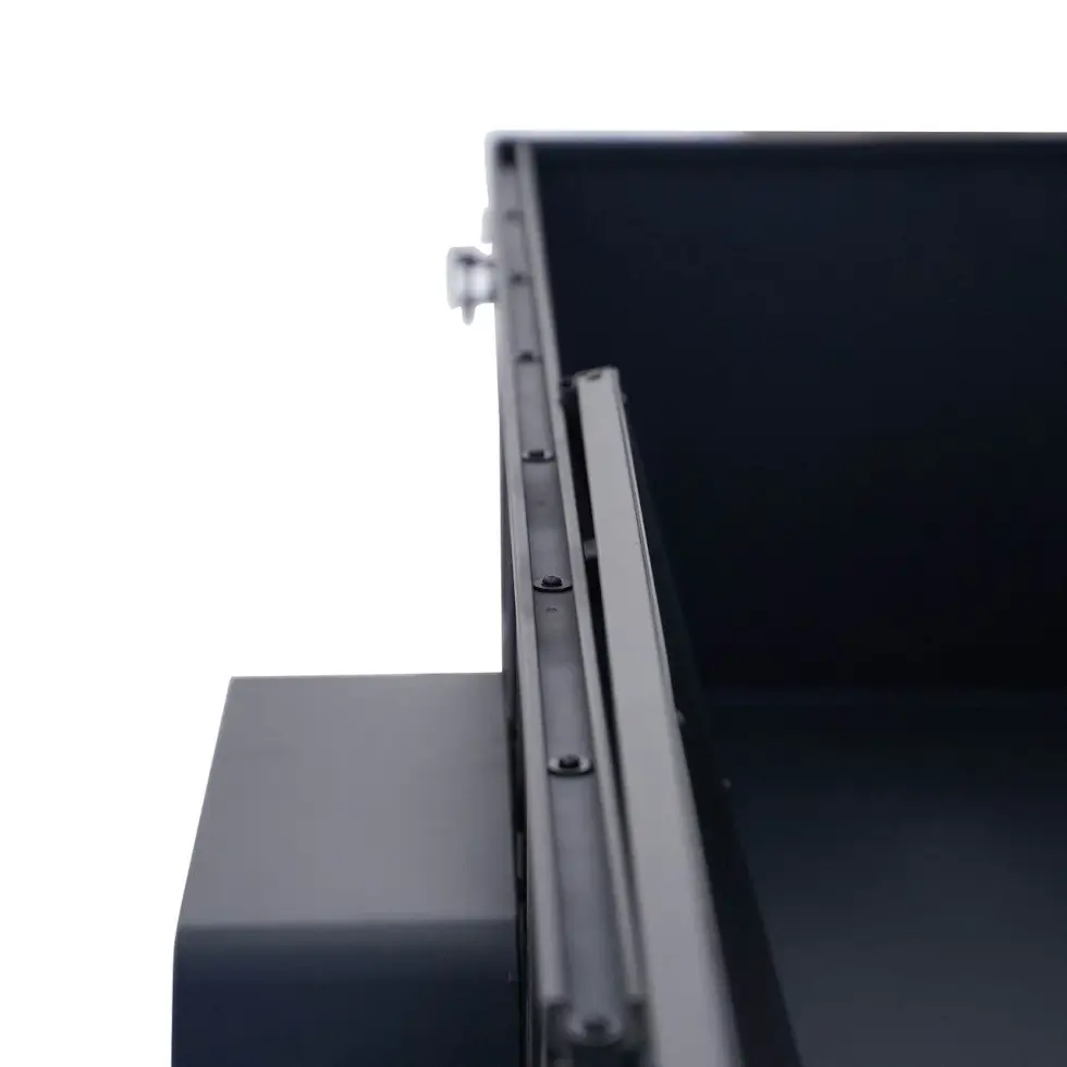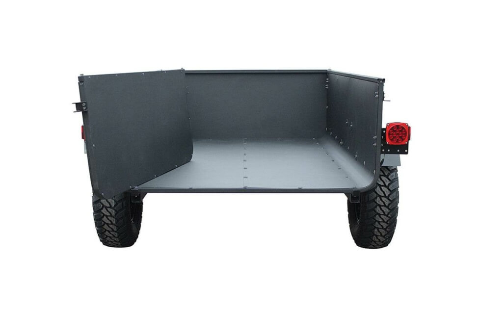 For exceptional durability, the construction uses galvanized steel, 14-gauge x 2″ frame tubes, 18-gauge flooring, and sheet metal with black powder coating for the body. To aid with cargo organization, we have C-Channel tracks and removable front/rear gates.
