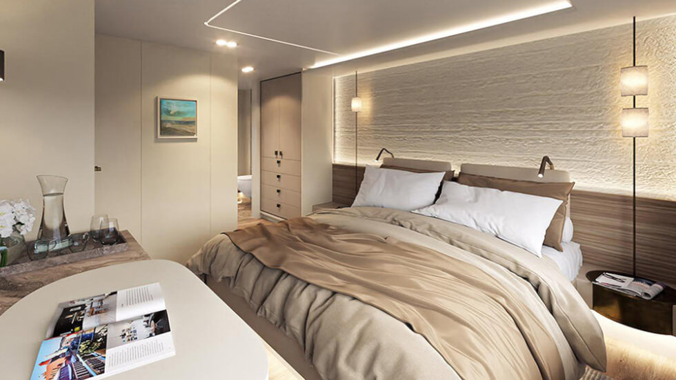 Below deck, guest passengers can stay in the four en suite staterooms. Cabin crew, meanwhile, can stay in the addition two staterooms.