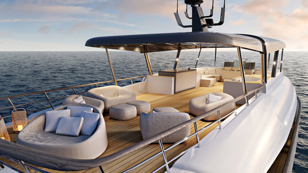 The LeVen 90 is probably the shortest yacht you’ve ever encountered — the thing has a depth of just 4.5 feet. Really, really tiny. But not in performance. Made specifically for shallow water adventures, this wee ride packs a slight punch, still.