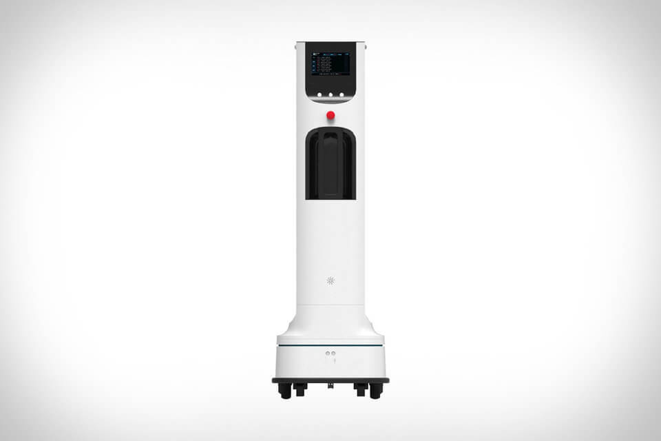 This autonomous robot is capable of disinfecting busy areas including hotels, transportation, offices, classrooms, restaurants, hospitals, and other businesses. It uses ultraviolet light (UV-C) to kill a wide range of bacteria and germs. As per the FDA, UV-C light, found in most sanitizing and disinfecting portable machines, can also destroy the protein shell of some viruses. It may even be effective in inactivating the SARS-CoV-2 responsible for the COVID-19 disease.