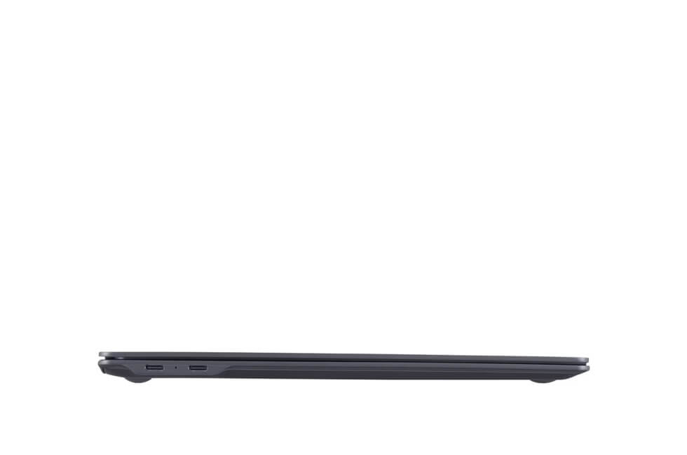 Fast-forward to 2023 and the gram SuperSlim still ships with its signature characteristics intact. This standard clamshell model measures 14” x 8.95” x 0.43” to 0.49” (W x H x D) and tips the scales at only 2.18 lbs. You might think the laptop is crafted out of plastic, but LG chooses to build it out of magnesium alloy. The cool feel of the metal reminds users of its top-shelf designation.