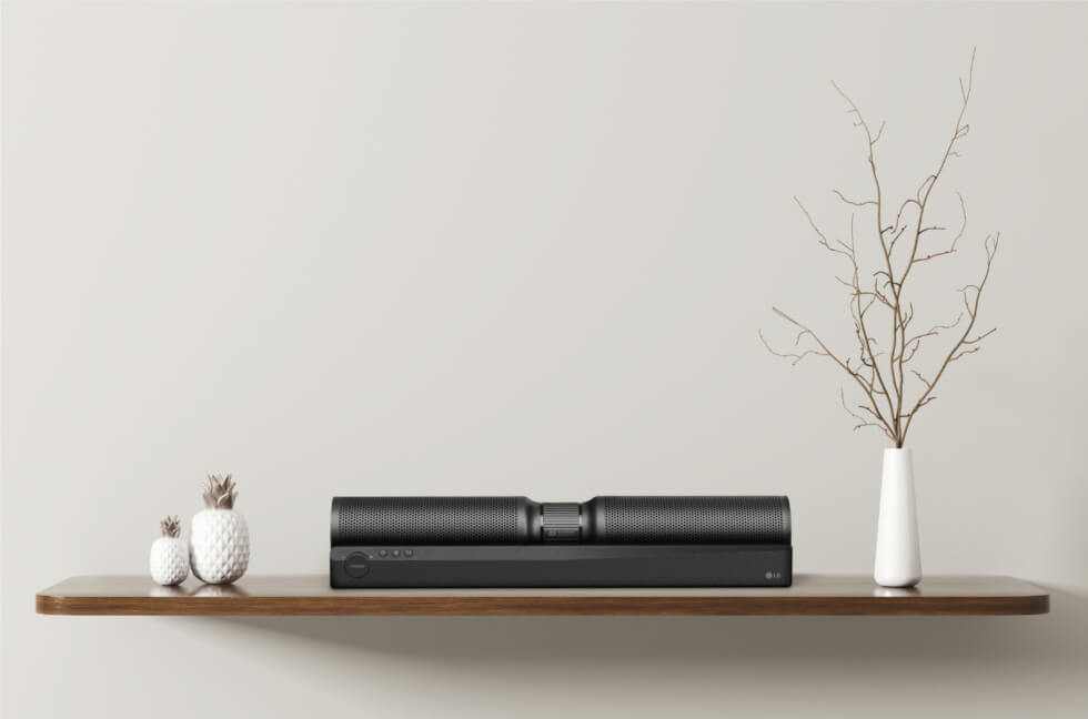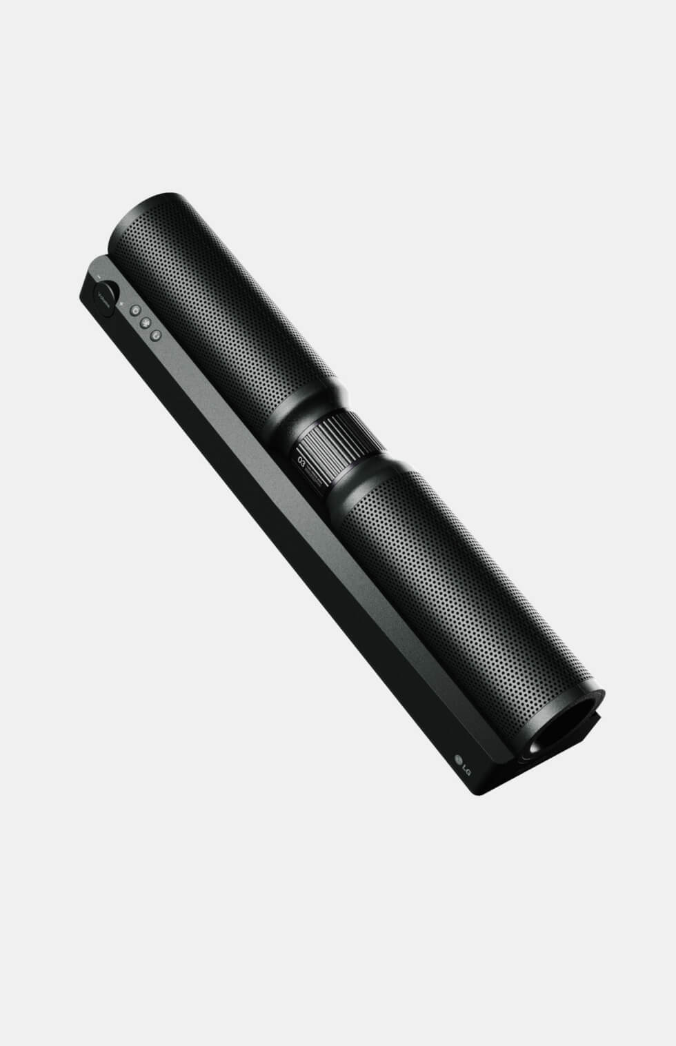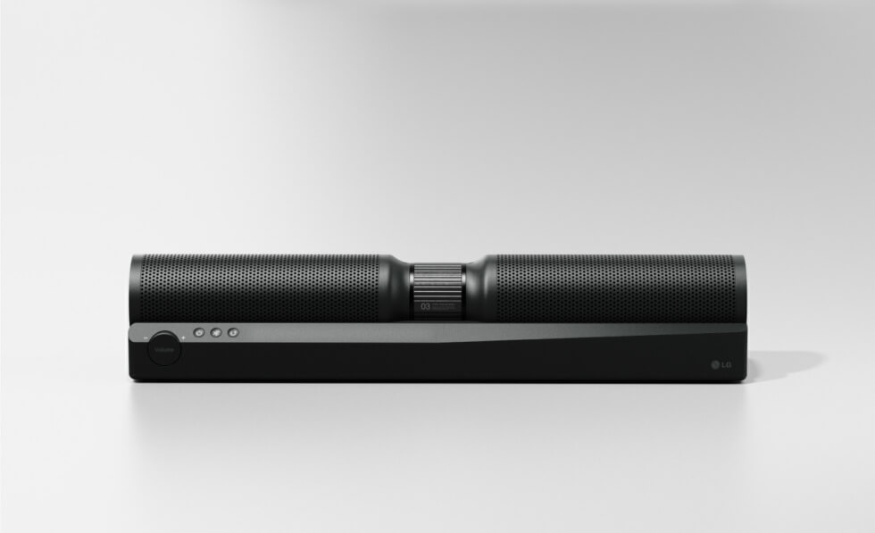 Aesthetics-wise, it looks like your typical soundbar. The perforations on the tubes are likely for the drivers inside. We can also see two side-firing units on both ends of the cylindrical body. The LG emblem occupies the lower left of the base, while a volume dial and buttons take up the left. Too bad the Module Spinner 1.3 is just a proposal for now.