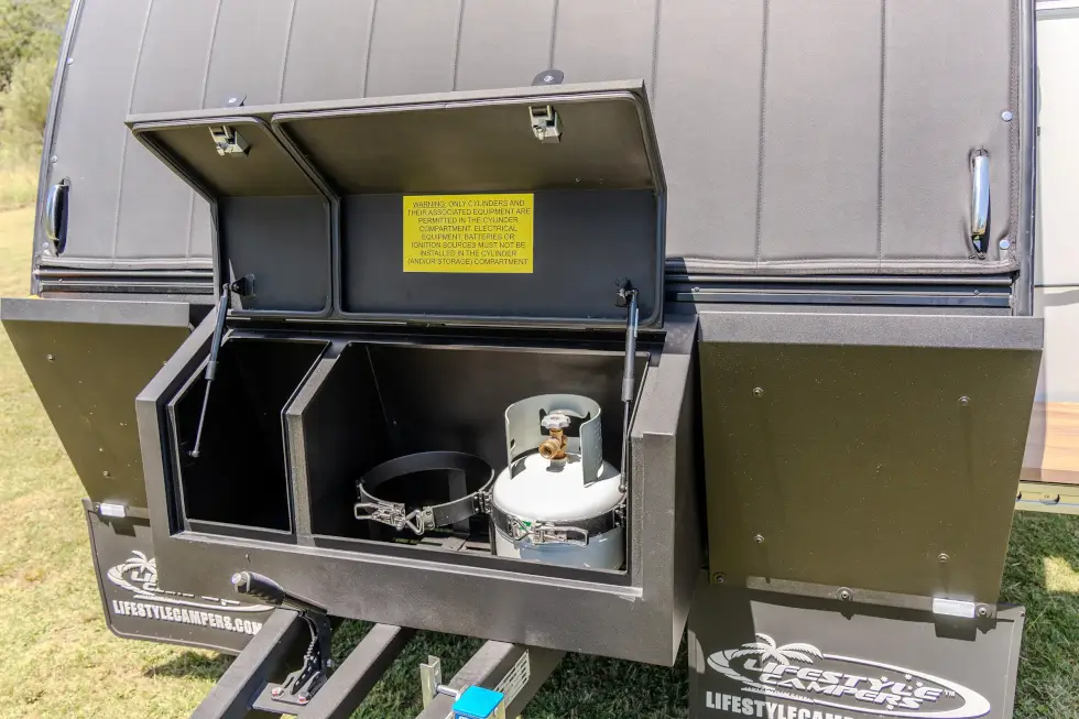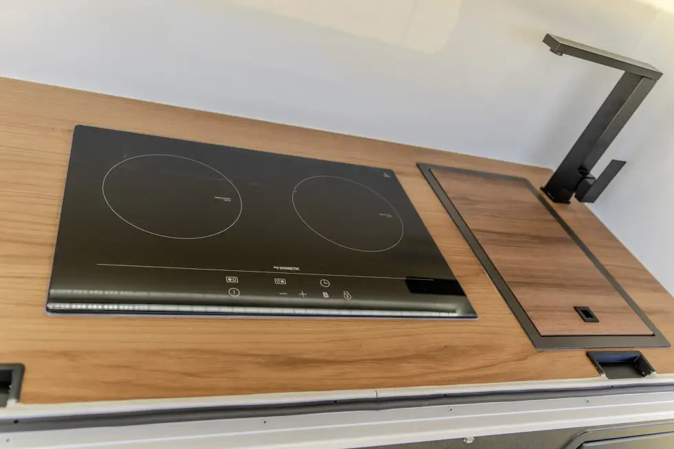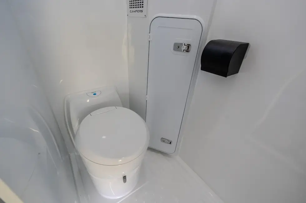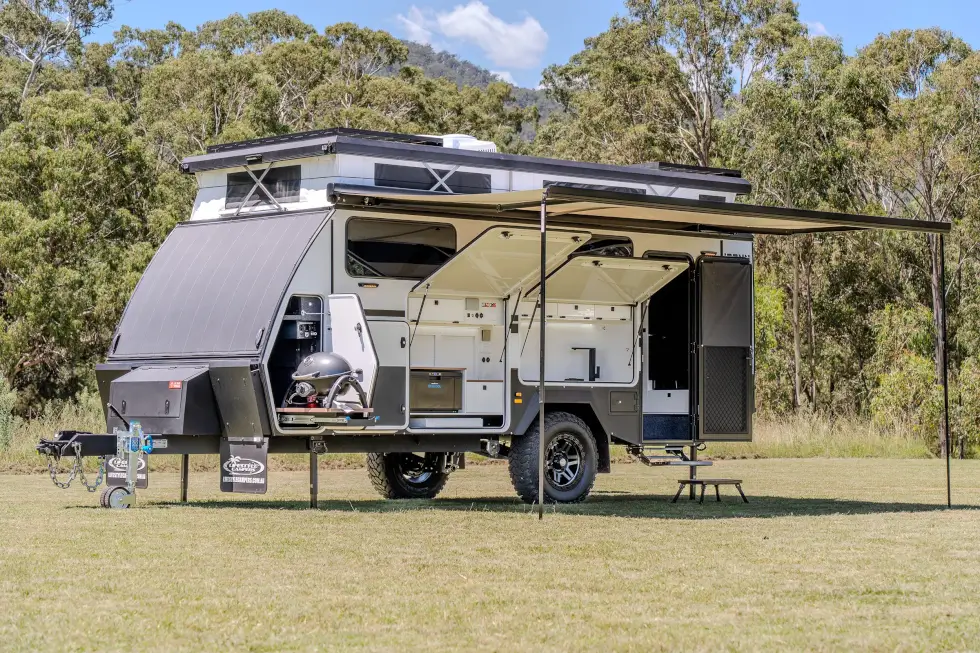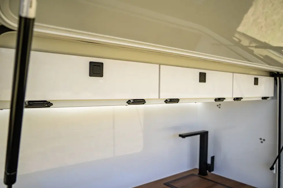 The manufacturer notes that each unit “takes innovation to an entirely new level. Compact yet spacious, and sleeping up to five people in total comfort, it’s the ultimate Hypercamper for adventurers who refuse to compromise.” You get to choose from four layout options, and each accommodates anywhere between two to five people.