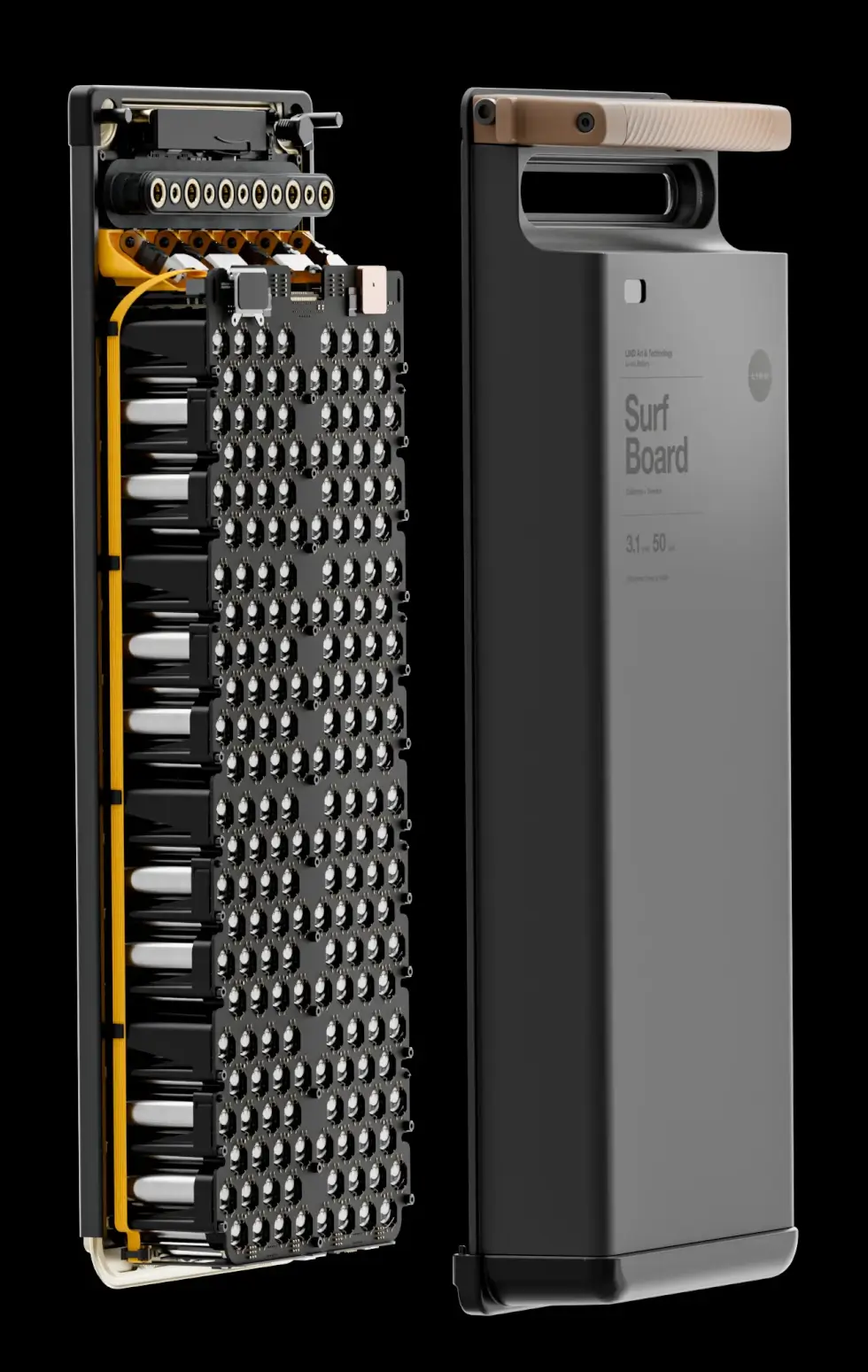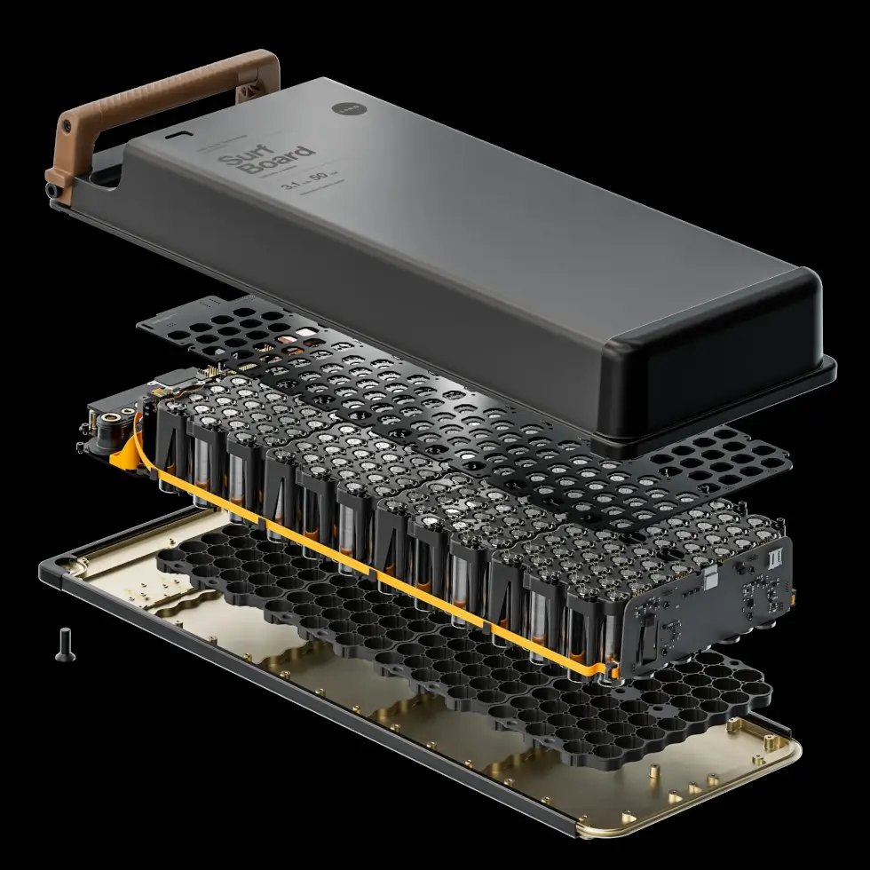 Next is the dual-motor propulsion unit capable of generating 20 kW or 27 horsepower and just weighs around 22 lbs. Depending on the water conditions and weight of the surfer, the Canvas can reach speeds of up to 40 mph for an exhilarating time.