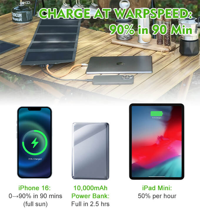 Moreover, a built-in dust cover protects the panels from dust, dirt, and scratches while folded. This thoughtful addition makes it outdoor ready, whether it be at the beach, dusty trails, or the desert. It also has an intelligent IC chip that auto-adjusts power delivery to prevent overcharging and overheating.