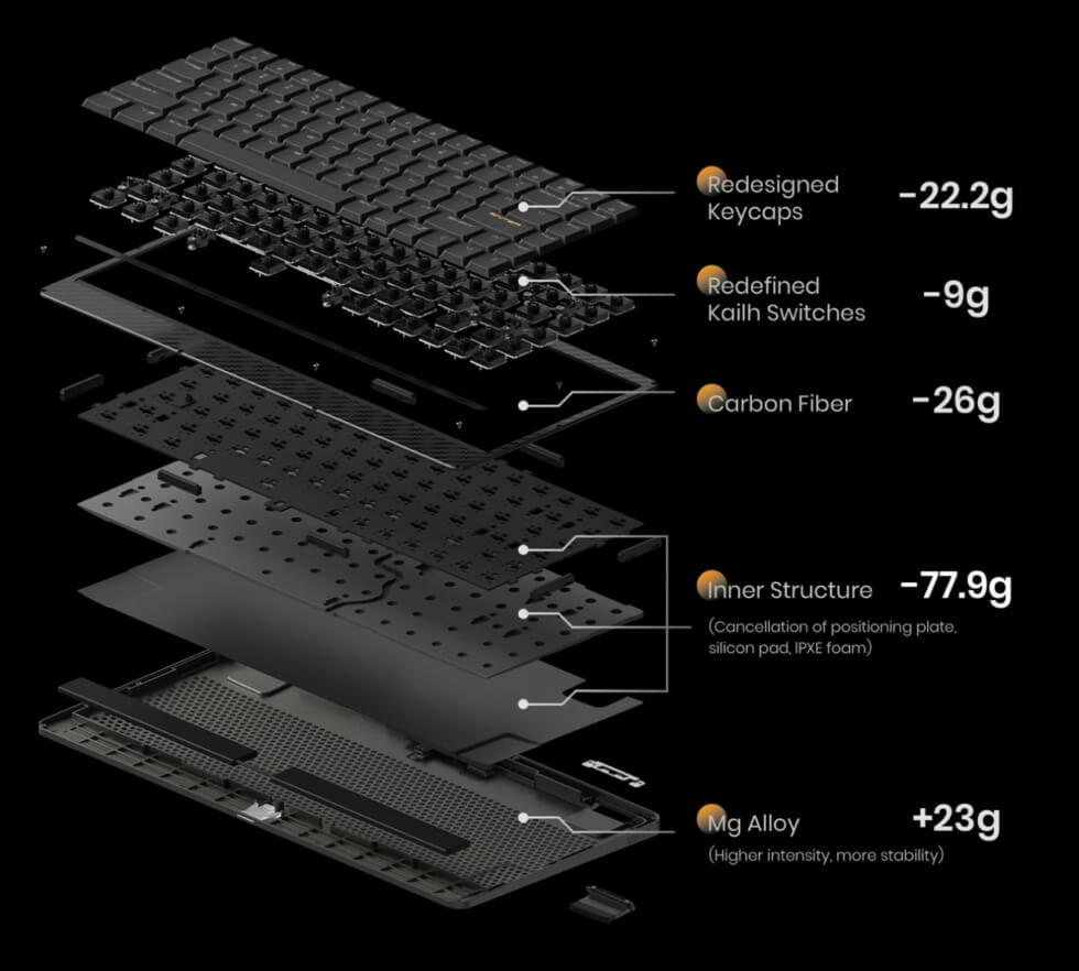 If you need a keyboard that’s remarkably slim, responsive, stylish, and offers an excellent typing experience, then read on. Lofree is crafting an input device that measures 5.4 mm at its thinnest point and weighs only 1.07 lbs. To achieve this with the EDGE, the manufacturer turned to composites — specifically carbon fiber.