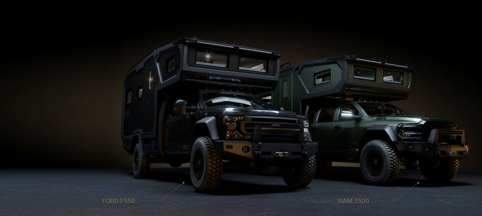 This recreational add-on is available for the Ford F550 and Ram 5500 and offers close to double the length of the Falcon 8. At 15 feet, owners can take advantage of the larger batteries, more sleeping options, bigger water tanks, and other creature comforts. Like all its campers, the Falcon X is engineered for all-season adventures.
