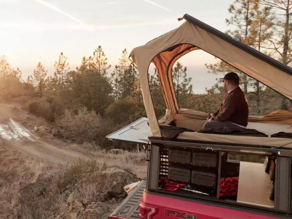 This rooftop tent gives you enough room to stand even with the bed deployed thanks to its 32″ pass-through space. If you need even more space, then you can push the bed out of the way using dual gas struts this way you can utilize your full truck bed safe from the elements.