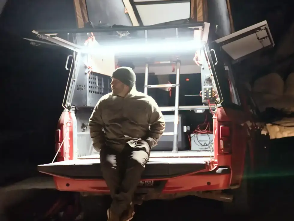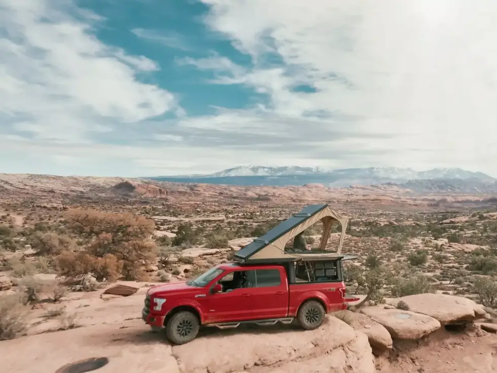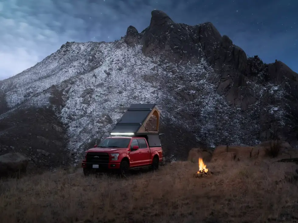 The Lone Peak Camper is custom-made to fit your truck bed. As such it comes with bed gaskets and a fit kit to mount to your vehicle. It also comes with locking side access doors for security, tinted windows for privacy, and open-air tent windows for ventilation. Then there’s a standard 4″ thick and 80″ long mattress made of aluminum honeycomb that can withstand a weight of 272.16kg. and can comfortably sleep a 6″2 height.
