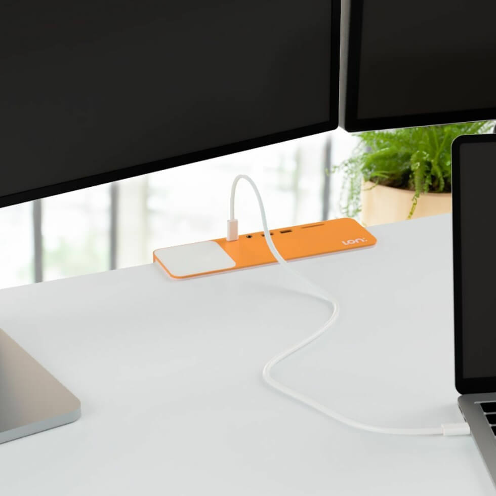 The Lon:HUB creates a neat and organized desk setup, which is important for efficient work productivity. It even comes in a Pro version which packs even more features and still comes in the same sleek design. The Pro has Thunderbolt 4, two DisplayPort 1.4 ports, a QI1 wireless charger, 2 two HDMI 2.1 ports, 2.5Gbps Ethernet, two 10Gbps USB-C ports, a UHS-II SD card reader, a 100W Power Delivery, and six 10Gbps USB-A ports. Not to mention, the docking station comes in various colorways that add a pop of color to your desk.