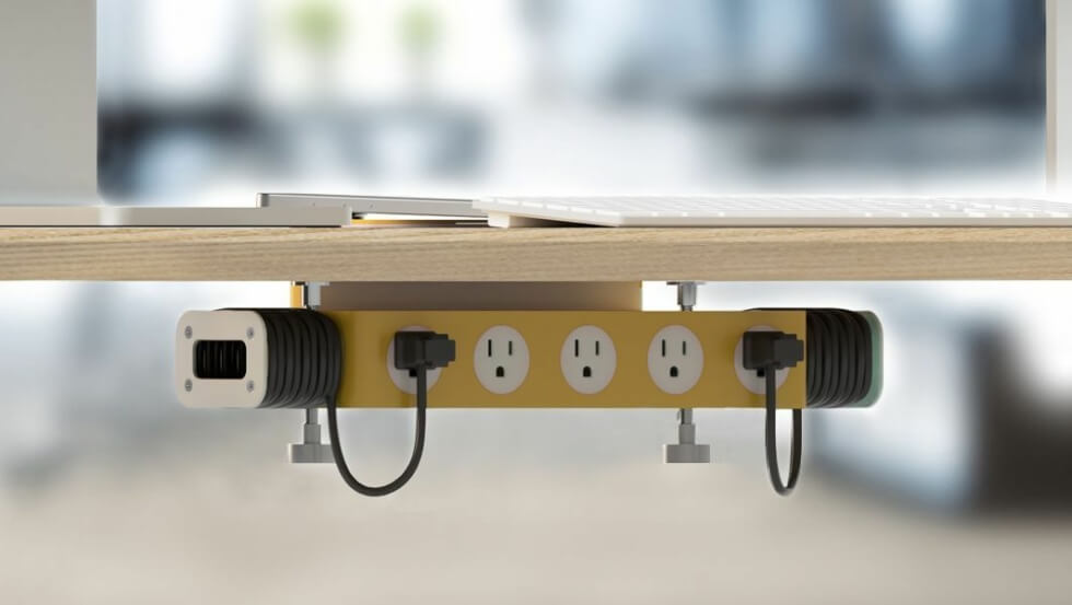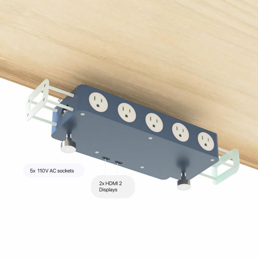 It’s designed to clamp onto the back of your desk with majority of its form factor concealed underneath the surface. Thus, it also hides the wires or cables from clear view. Underneath, it hosts five 110V AC sockets, two HDMI ports for monitor displays, and a couple of extended arms where you can wrap around the cords to prevent them from dangling.