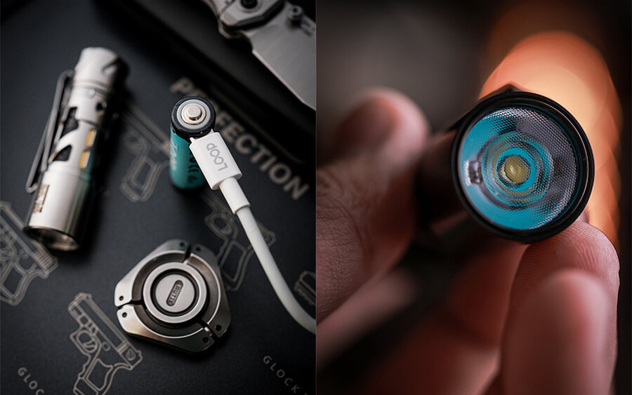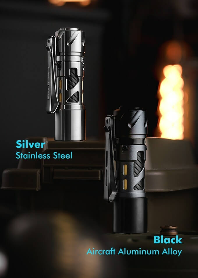 LOOP Gear’s SK03 flashlight is also IP65-rated water and dust resistant and can stand drops up to one meter. It comes with multiple safety protections including electric lockout, reverse battery protection, and over-discharge protection and in three metal body options including Black Aircraft Aluminum Alloy, Titanium Alloy, and Silver Stainless Steel.