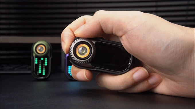 The display shows custom animations and mini-games, including dice and rock, paper, scissors. It also shows the battery status, runs a timer, and lights up in ambient glow.  It provides fun and entertainment while showing useful information.