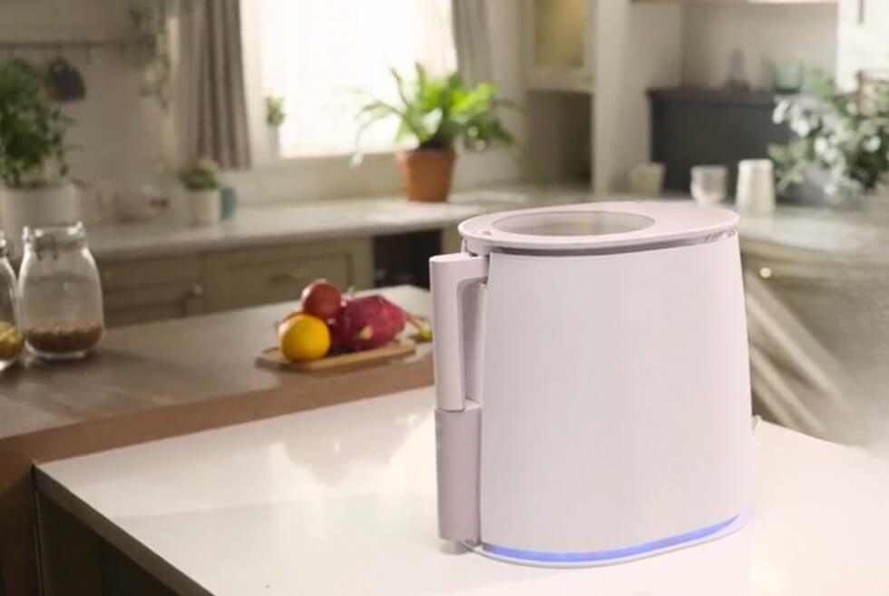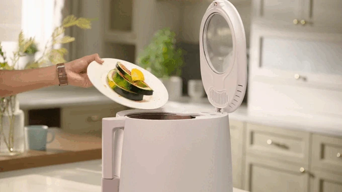 This is the “world’s first Air-Heat Food Recycler” that effectively shrinks 90% of food waste into a dry pile in just two hours. It uses a combination of motorized blades and heated air to grind and then dry the scraps. It operates quietly and is energy efficient. Each cycle only uses 0.86 kWh, or as little as 0.5, in Quick Mode.