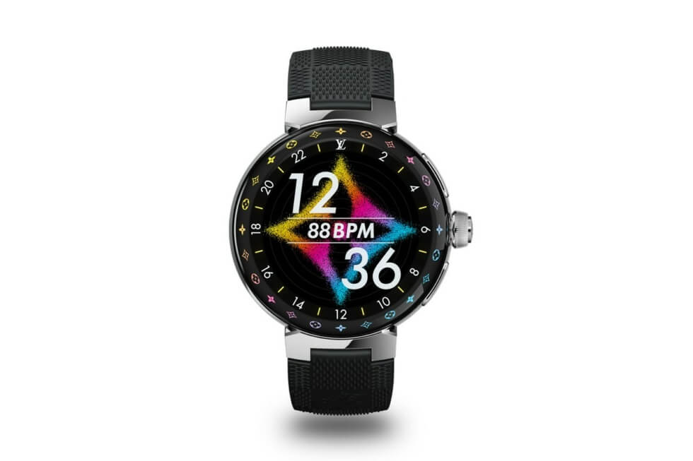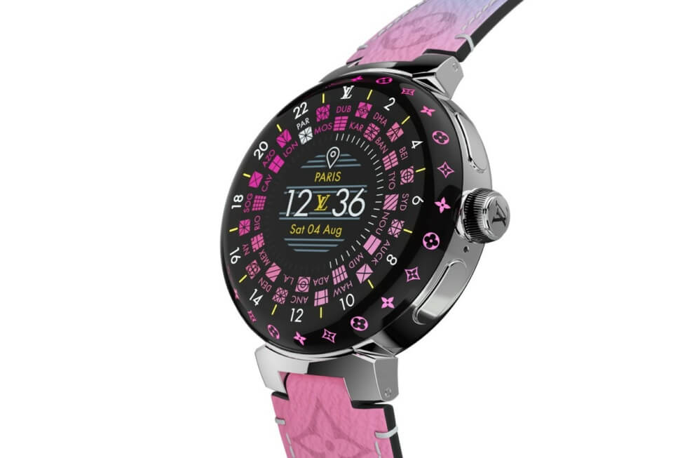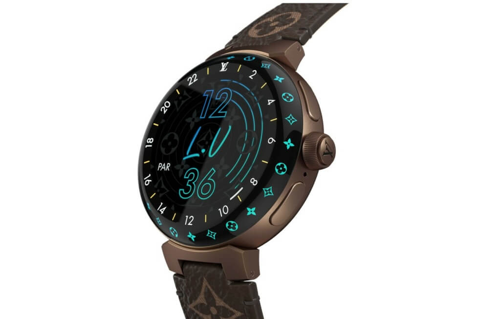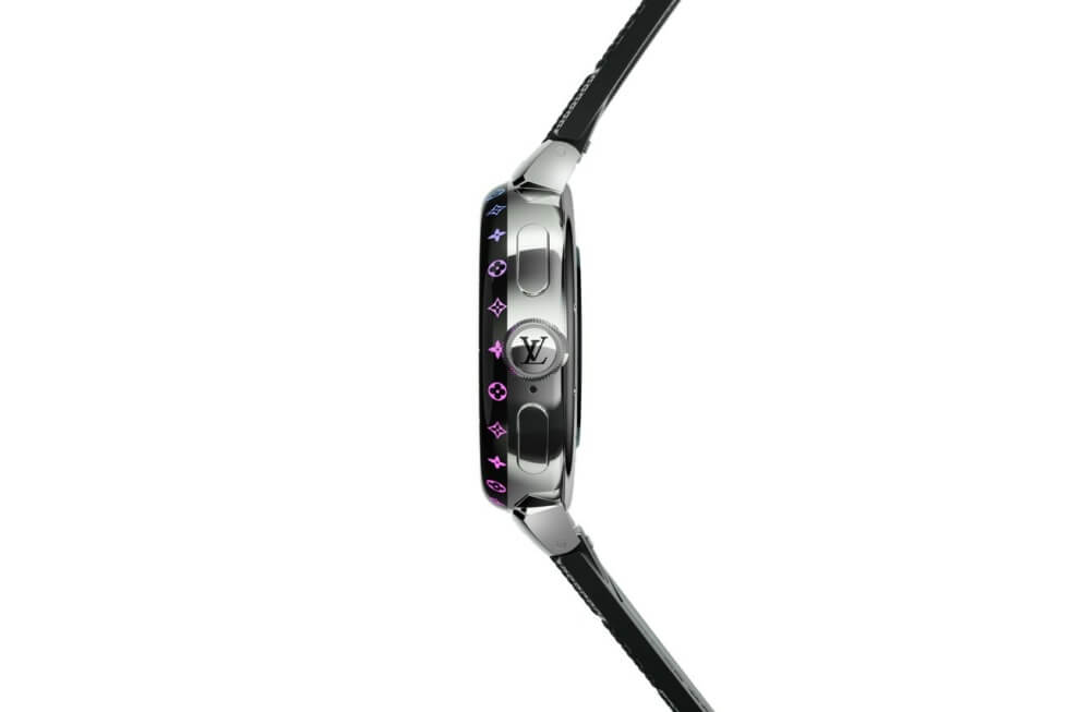 However, another possible reason might be to control the 24 color-changing LED lights that lie under a ring of Louis Vuitton’s iconic monogram symbols. The curved edges of the sapphire crystal encase a round 1.2-inch, 390 x 390, AMOLED touchscreen with the rest of its components housed within a metal case.