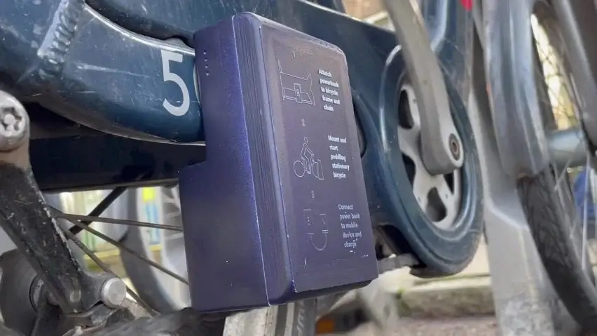 Luke Talbot created the My PowerBank to provide the homeless in London a means to charge their phones or other devices for free. It gets charged up using London’s Santander rental bikes.