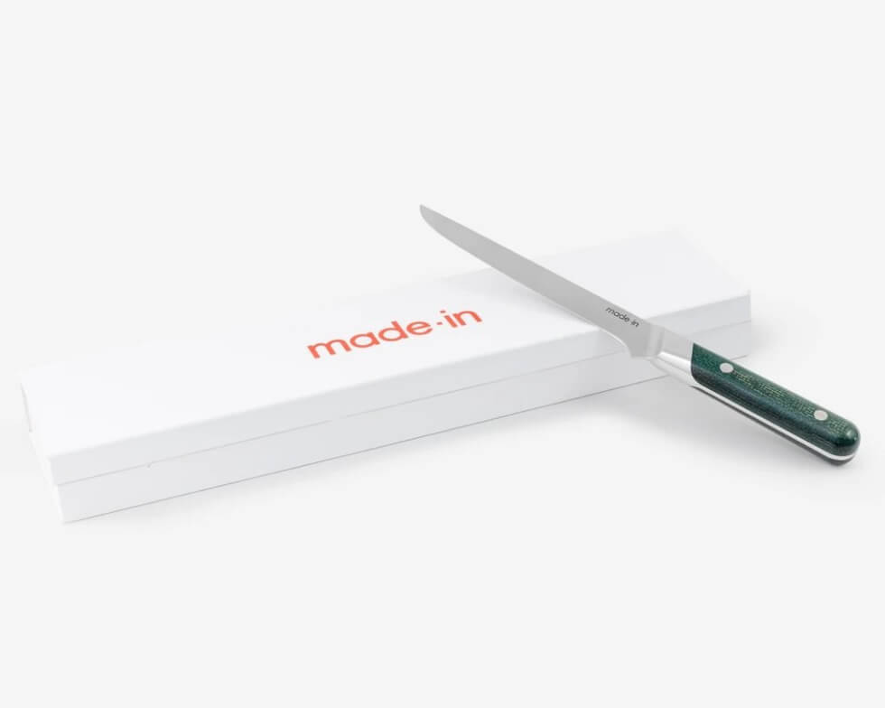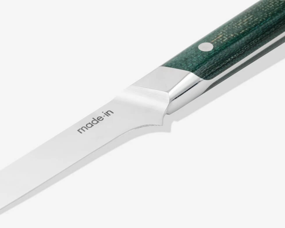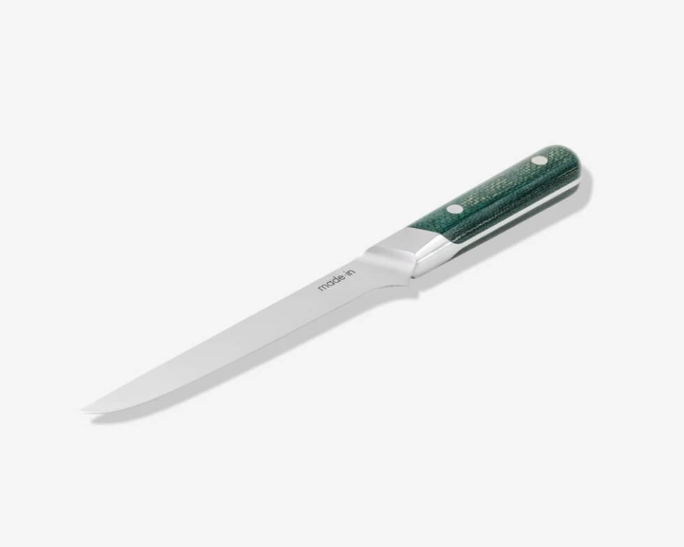 For added ease in cuts, the Made In Boning Knife comes with a Forest Green micarta handle which is an incredibly strong resin and fabric composite. The material’s innate strength can handle all the pressure from your hands so you don’t have to worry about it breaking. Overall, this limited-edition knife is great for trimming fats from steaks or from big cuts.