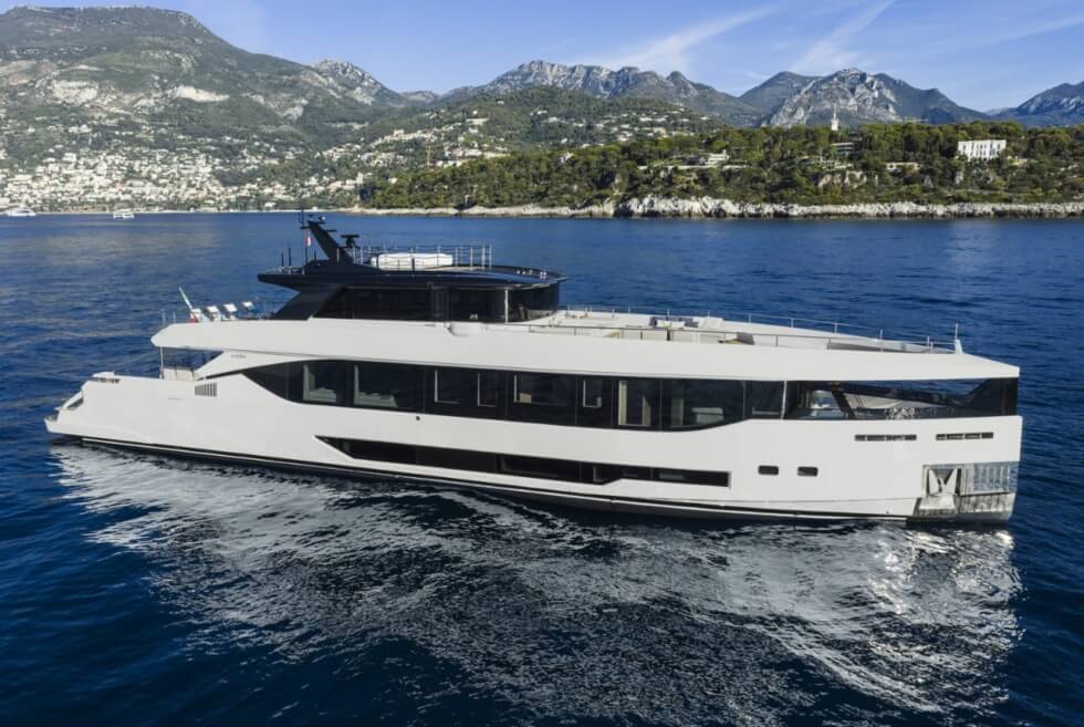 This exemplary blueprint by Maiora was unveiled at the recently concluded Monaco Yacht Show last month. It boasts a sporty profile with a gross tonnage of approximately 180 spread across four decks. According to its technical specification, the construction uses composite materials for both the hull and superstructure.