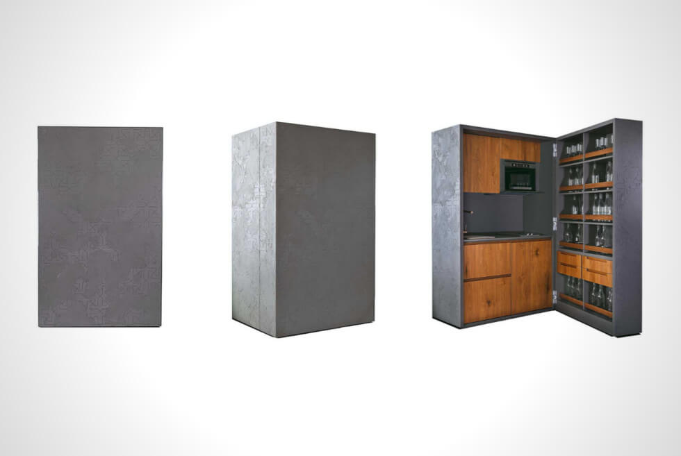 There are shelves to hold bottles, condiments, and other meal preparation necessities. We can also see some drawers for even more storage. Maiullari points out that a folding table is included as well. The outer surface looks like concrete, but we’re guessing it’s also wooden like the interior. The Cooking Box may seem innovative, but it caters to a niche market.