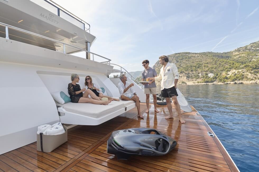 With a stellar presence at this year’s Cannes Yachting Festival, here’s what it brings to the table. The Majesty 100 Terrace lives up to the name courtesy of the living/social space within the open bow area of the ship. In the images, we can see cushions arranged like a makeshift bed.