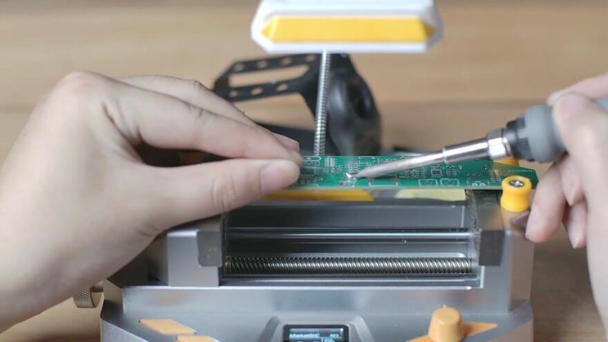 Its 0.96″ OLED display shows all relevant information such as battery life, settings, and more. The VS01 has a maximum clamping stroke of 125 mm to accomodate a variety of items. Optional add-ons are also in development such as a magnifying glass, an LED light sources with adjustable brightness, and a fan to draw smoke away when working with PCBs and other stuff that can produce fumes.