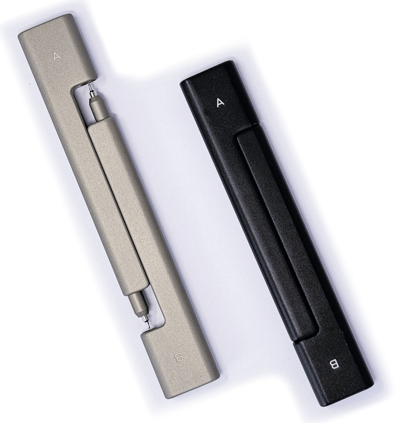 The two pens nest seamlessly together via magnets to form into a rectangular-shaped tool. You wouldn’t know it’s a pen just by looking at it unless you pull them apart. You get a satisfying snap when releasing or attaching the pens, making it a great fidget toy as well.