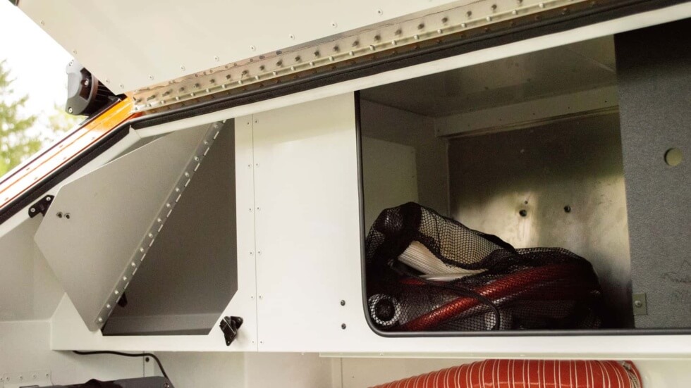 When you’re out in the wild, there’s no telling what dangers lurk nearby. Therefore, the Mammoth Overland equips the ELE with an automated bear spray system which can cover a 25’ x 10’ area. If it eventually comes down to personal protection, secure storage compartments for handguns and rifles are available within the cabin.