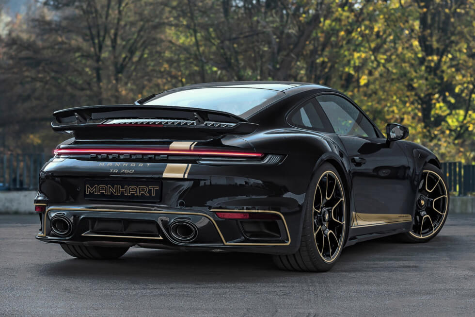 They’re also modifying the current-generation 911 Turbo with a Kline exhaust that touts a 200-cell downpipe. Furthermore, its suspension system welcomes a set of H&R springs to lower its ground clearance by 1.2 inches. To finish it off, the TR 750 now flaunts Manhart’s signature livery of black with gold trims.