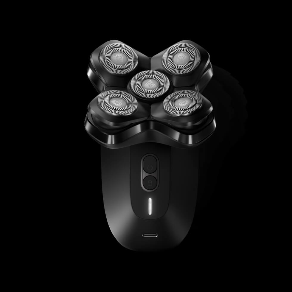 This tool relies on five stainless-steel SkinSafe rotary blade heads that float over bumps and curves for a smooth shave. These blades sit along a curved blade pad that work alongside FlexAdjust technology for effortless and seamless shaves along contours. It also allows each blade to stay in close contact with the scalp for a close shave at .10 mm.