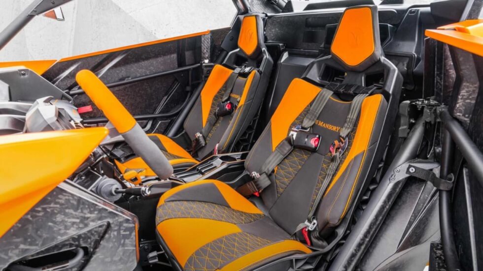 The donor side-by-side is already a mean monster when it comes to any type of terrain. Mansory probably felt that it was not enough. Tweaking the stock turbocharged Rotax ACE 900-cc engine, Mansory is boosting the Xerocole up to 222 horsepower. It might not seem much at first, but considering the lightweight nature of this UTV, the upgrade will be impressive. Other add-ons include carbon-fiber side panels, a facelift up front, and a reinforced roof with LED bars. Pricing was not available as of this writing.