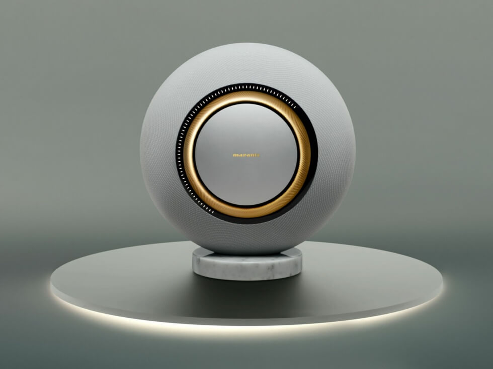 “Elements of the iconic Marantz design ethos are strikingly reimagined and complemented with luxurious materials to create Marantz Grand Horizon’s unique yet timeless silhouette,” reads the official page. The orb-like form factor includes a base and is available in three hues: Midnight Sky, Marantz Champagne, and Moon Ray.
