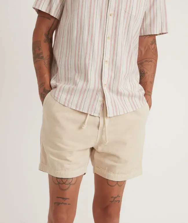 The Marine Layer Saturday Linen Beach Short boasts a subdued color in Sand so it can pair with just about any upper wear be it a T-shirt, polo shirt, jersey, or more. You can pair it with loafers or slip-ons for a more relaxed and chill-out look no matter your destination.