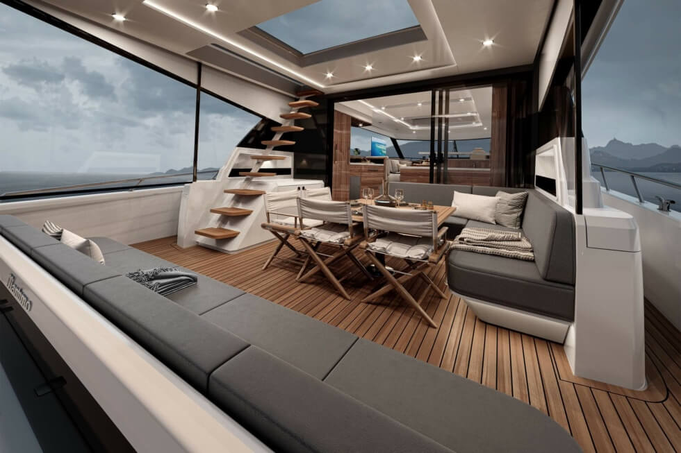 Protection from the elements comes from the hardtop which also doubles as a sundeck should you want to work on a tan. On the main deck of the S75 Sedan is a walkaround layout which allows one area to flow into another. A sprawling 200-square-foot Adventure deck offers more than enough for relaxation and other activities.